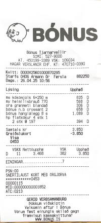 | 2 | My Heimilisbrauð 770 | Brauð | Myllan heimilisbrauð heilt, 770g | 568 | 1 | 568 | ||