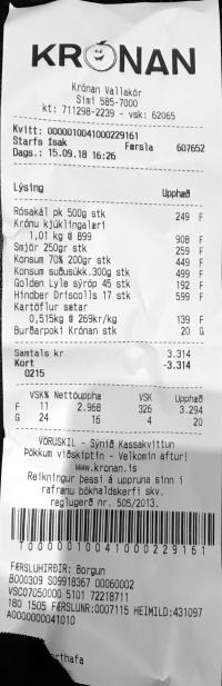 • Skráð samtala og samtala strimilsfærsla stemmir ekki
