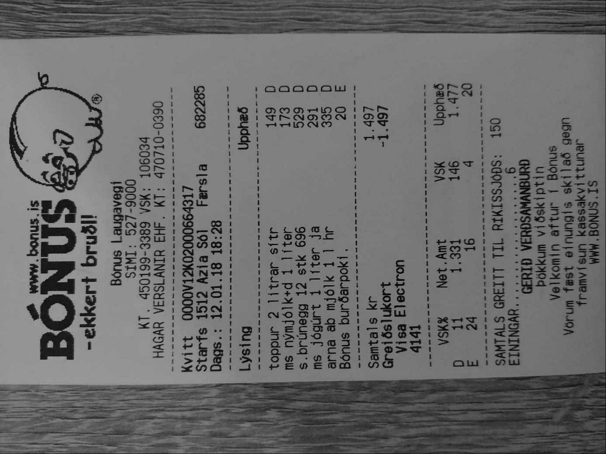 | 6 | Bónus burðarpoki. | Innkaupapokar | Bónus burðarpoki | 20 | 1 | 20 | ||