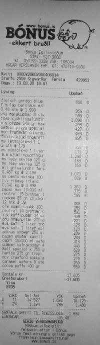 Skráð samtala og samtala strimilsfærsla stemmir ekki