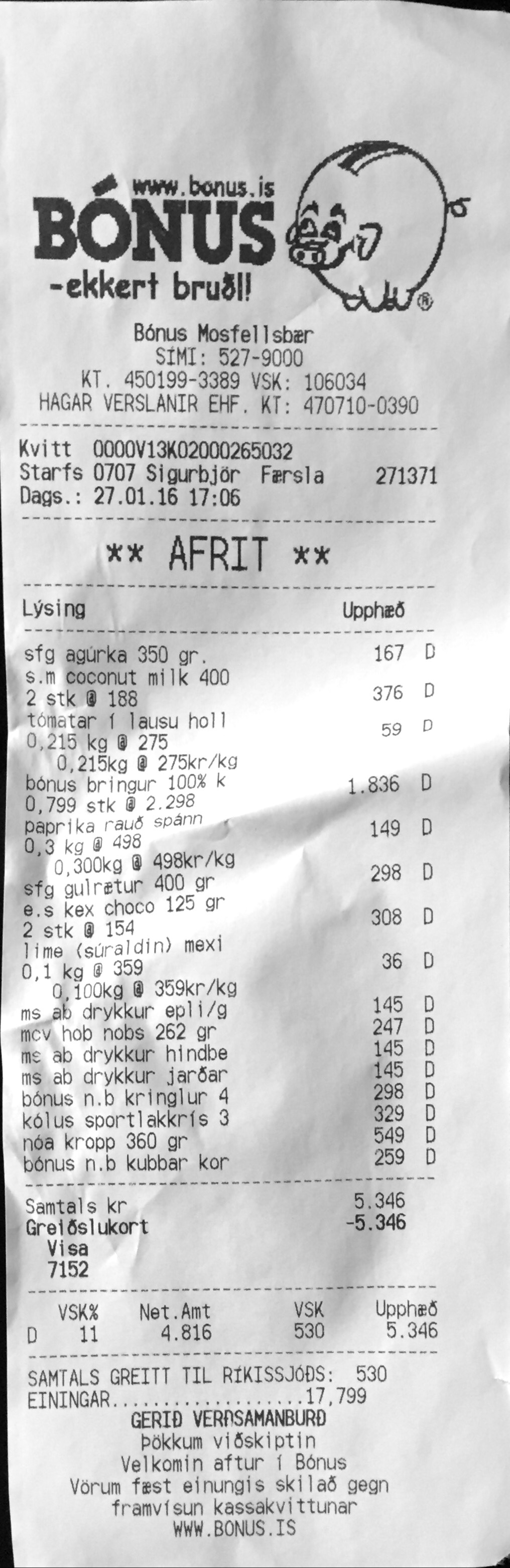 | 6 | bónus n.b kringlur 4 | Brauð og kökur | 298 | 1 | 298 | |||