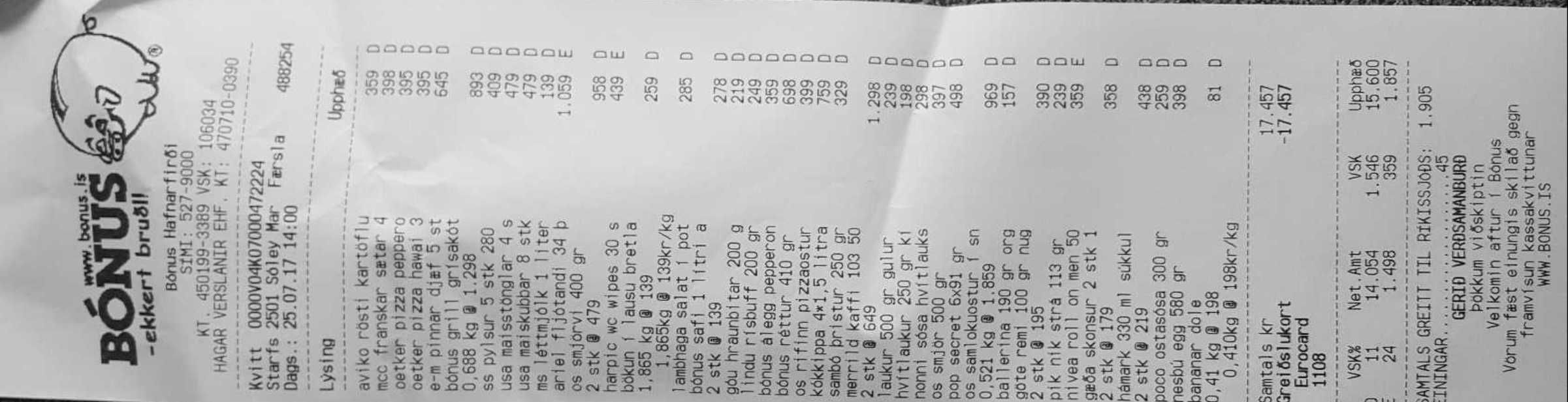 # Texti á strimli Vöruflokkur Vörueining Einingarverð Magn Afsláttur Samtals