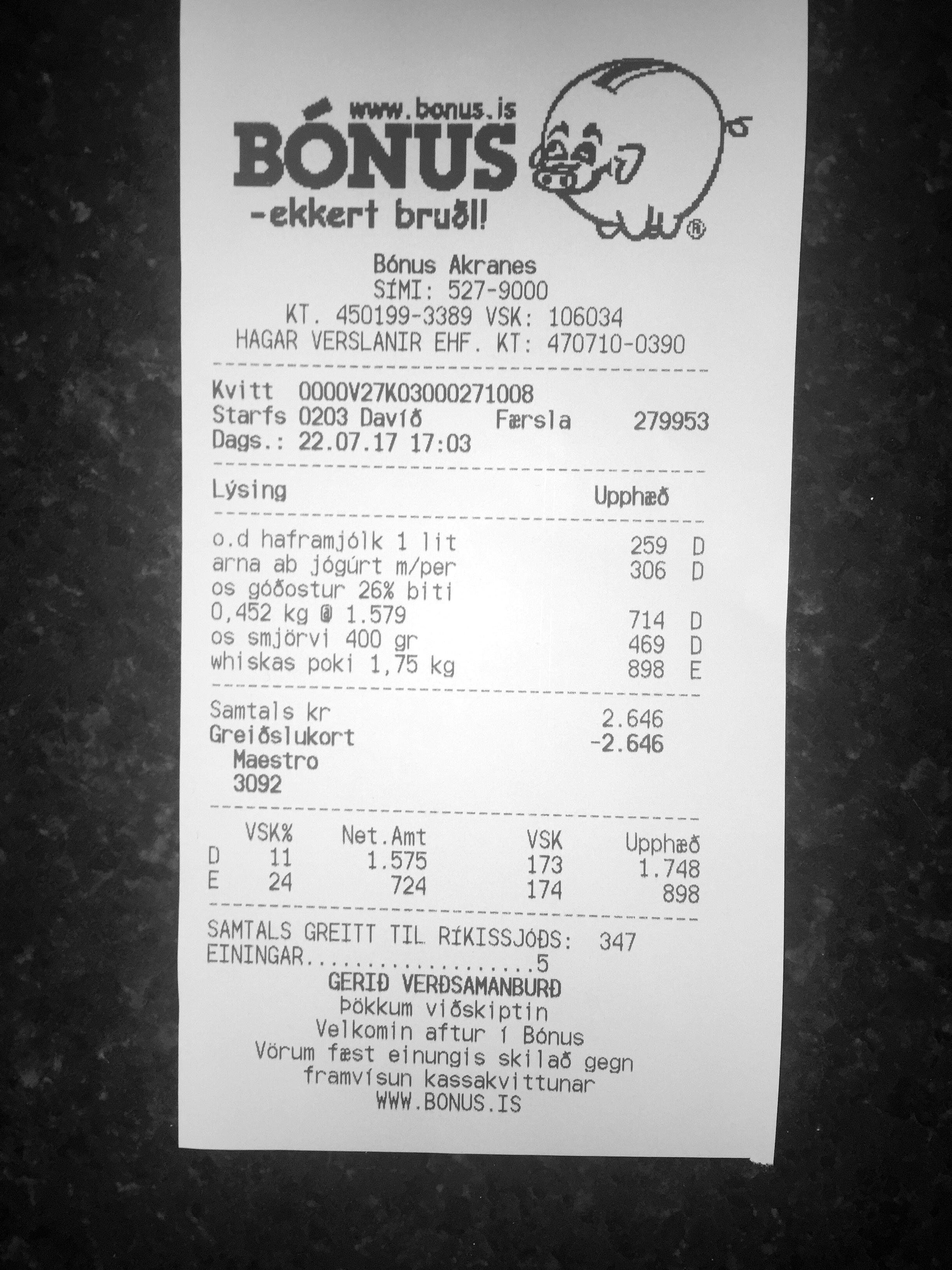 | 2 | arna ab jógúrt m/per | 306 | 1 | 306 | ||||