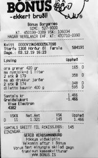 | 1 | ora grænar 420 gr | Grænar baunir, niðursoðnar | Ora grænar baunir, 420g | 165 | 1 | 165 | ||