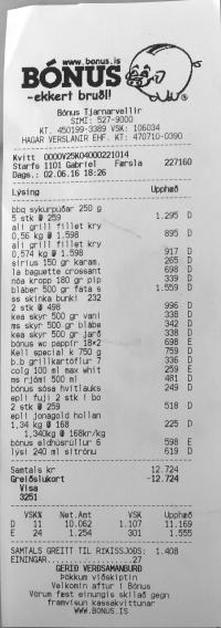 | 10 | Bónus wc pappír 18*2 | Klósettpappír | 698 | 1 | 698 | |||
