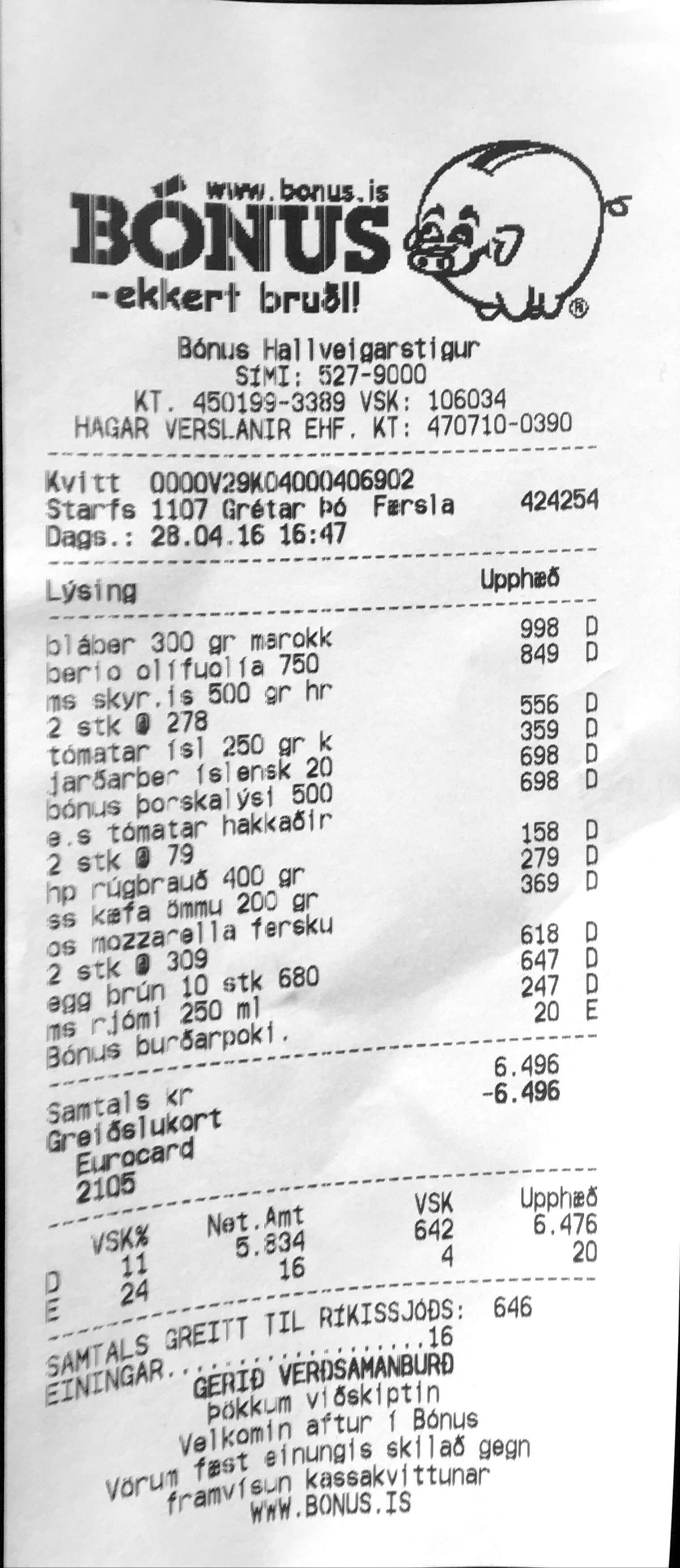 | 4 | bónus þorskalýsi 500 | 698 | 1 | 698 | ||||