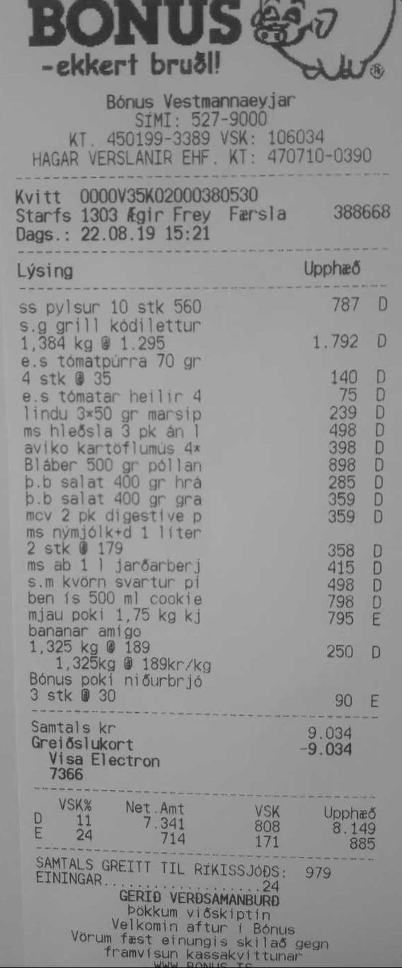 • Skráð samtala og samtala strimilsfærsla stemmir ekki