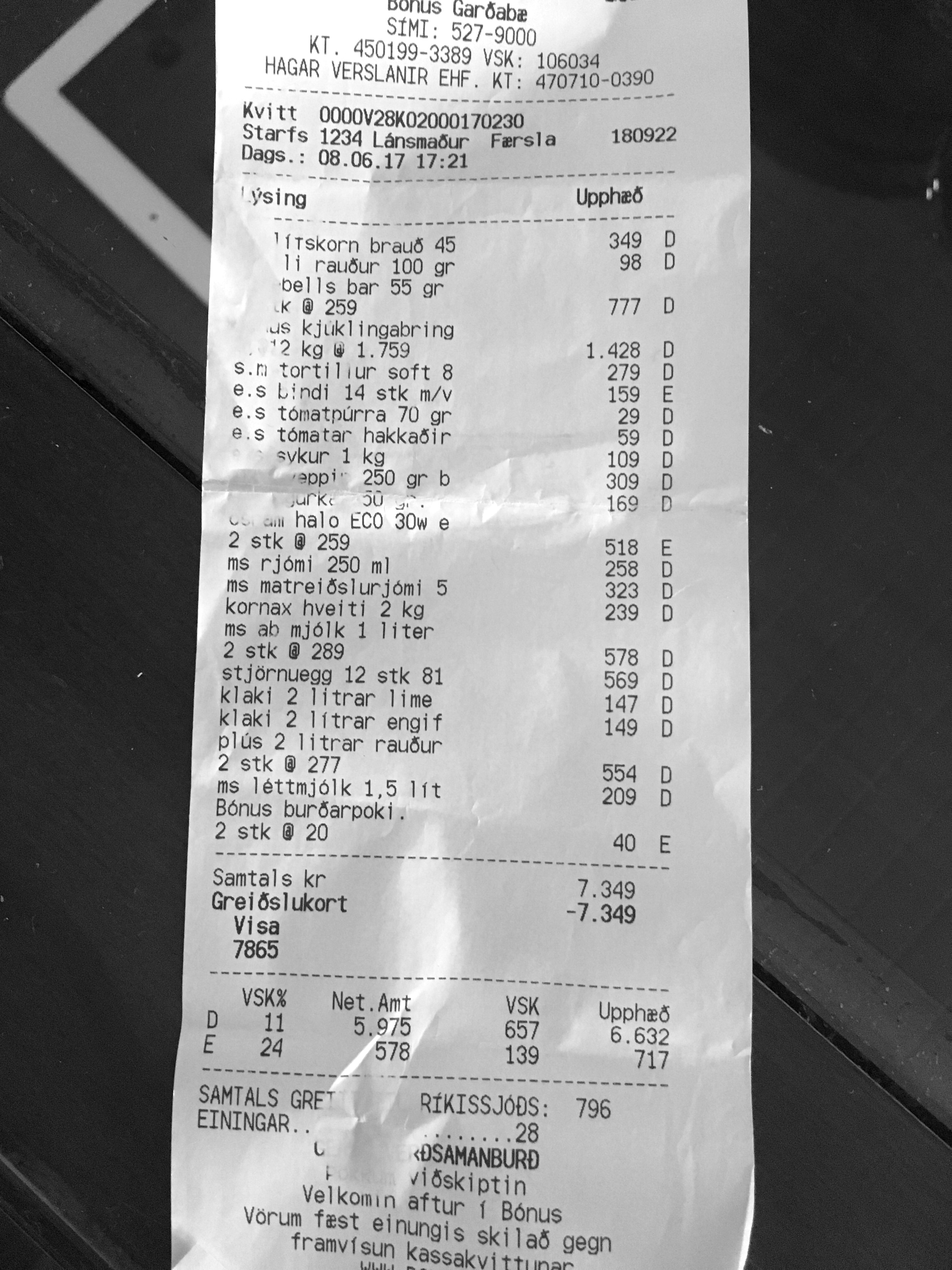 • Skráð samtala og samtala strimilsfærsla stemmir ekki