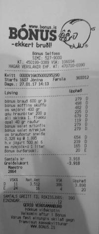 • Skráð samtala og samtala strimilsfærsla stemmir