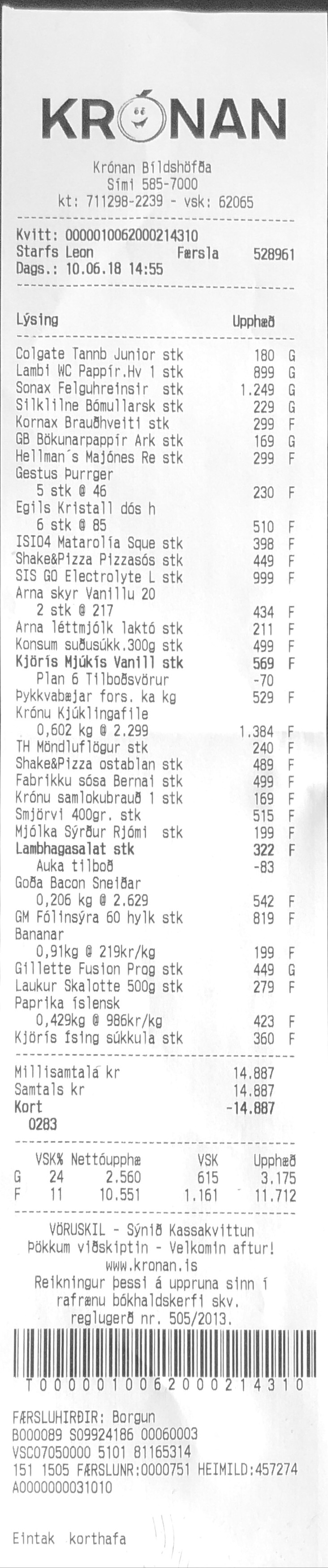 | 8 | Kjörís Mjúkís vanill ltr | 569 | 1 | 569 | ||||