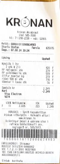 | 3 | FP sólblómaolía | 599 | 1 | 599 | ||||