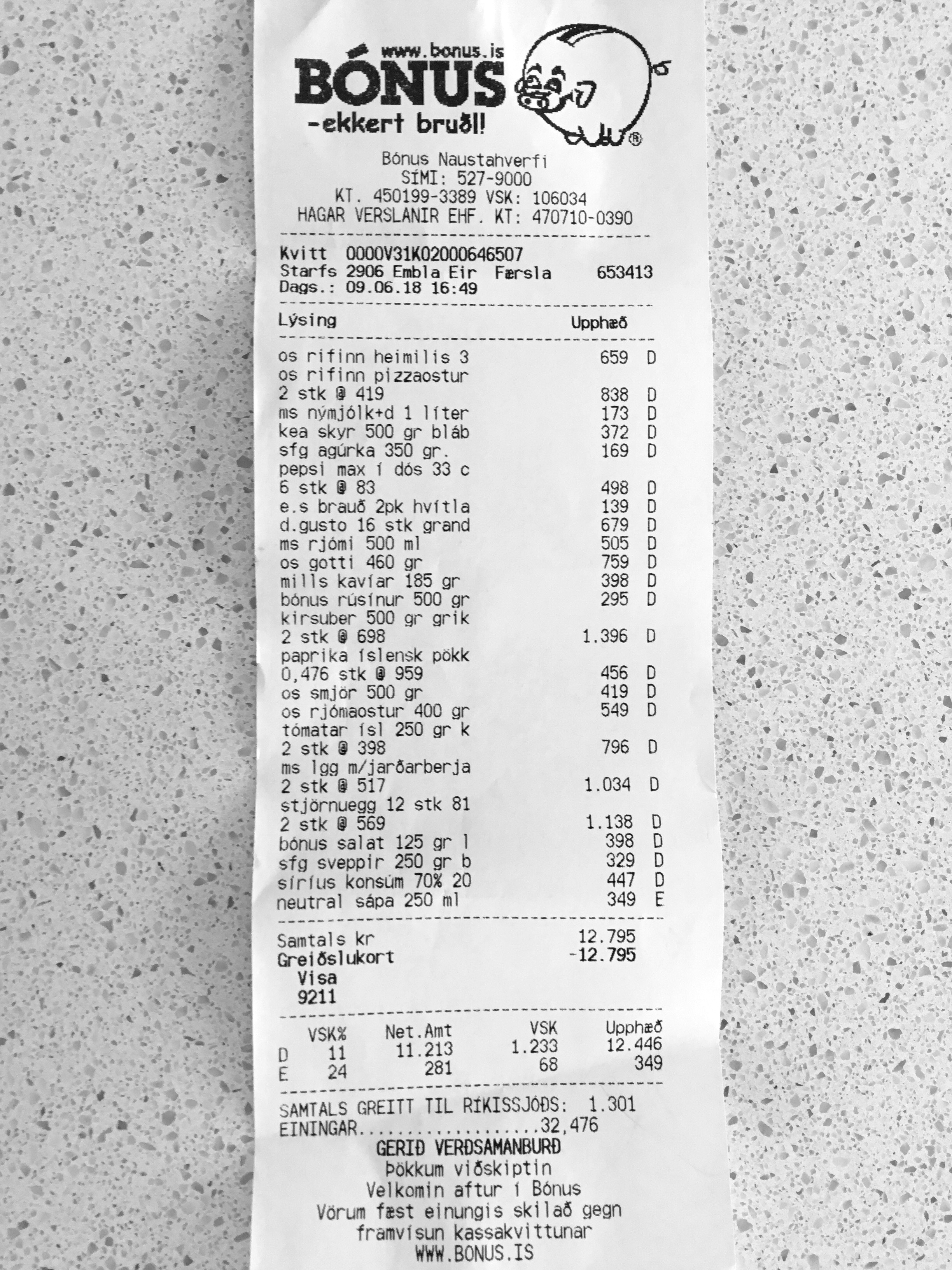 Skráð samtala og samtala strimilsfærsla stemmir ekki