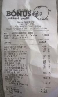 | 9 | k.t morgundögg 500 g | 991 | 1 | 991 | ||||
