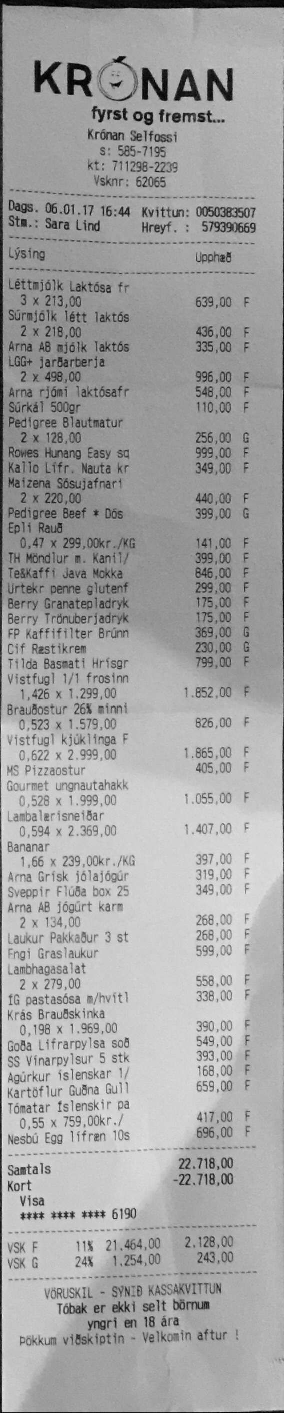 • Skráð samtala og samtala strimilsfærsla stemmir ekki