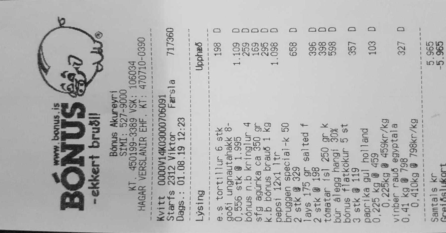 | 5 | k.b bónus brauð 1 kg | Brauð | 295 | 1 | 295 | |||